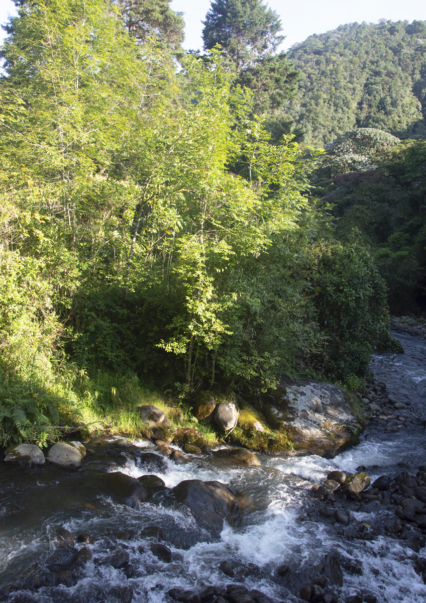 Řeka Otun v rezervaci Otun Quimbaya