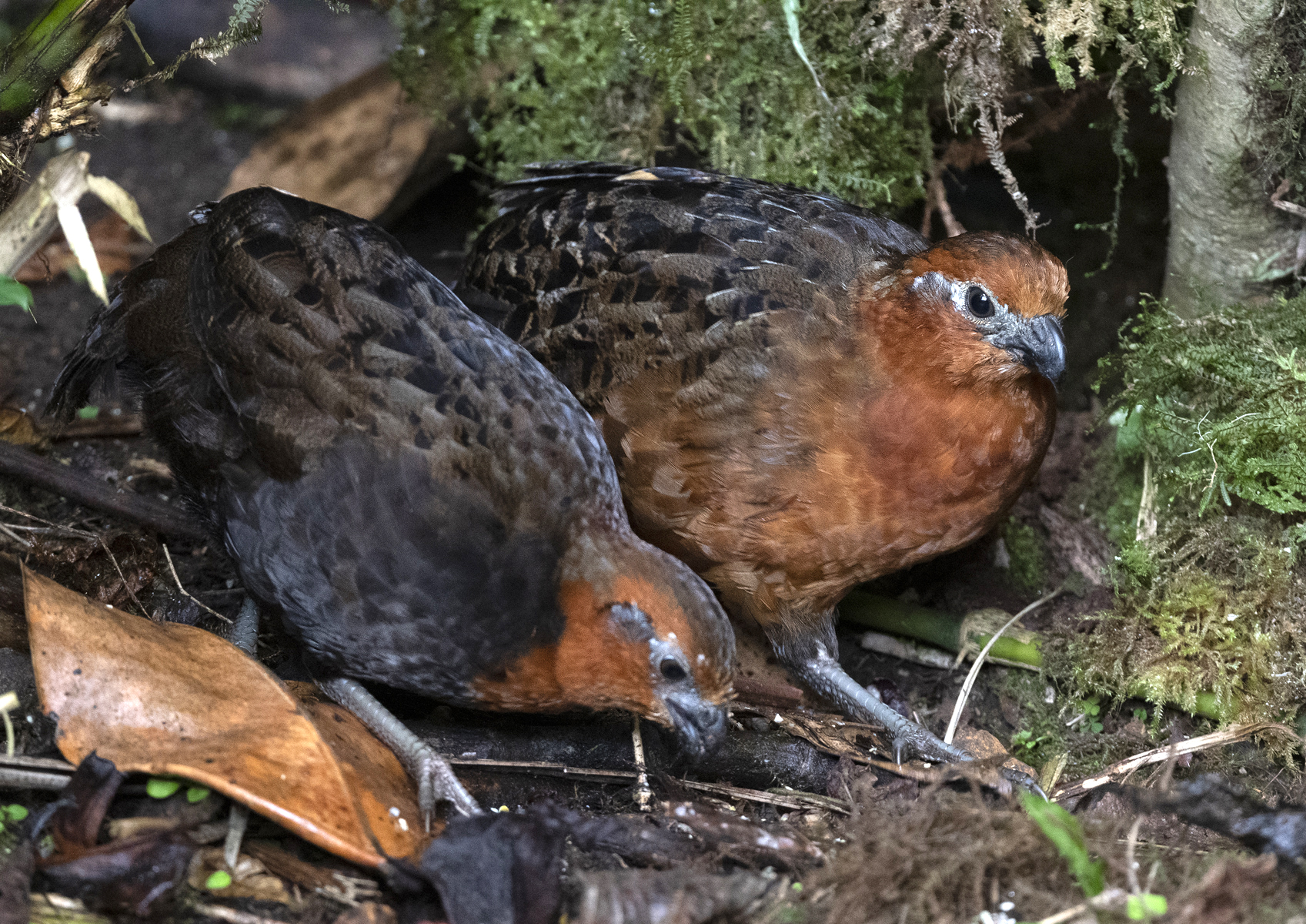 Pár křepelů kaštanových (Odontophorus hyperythrus) v zahradě Finca Florida - El Bosque de las Aves - 18km