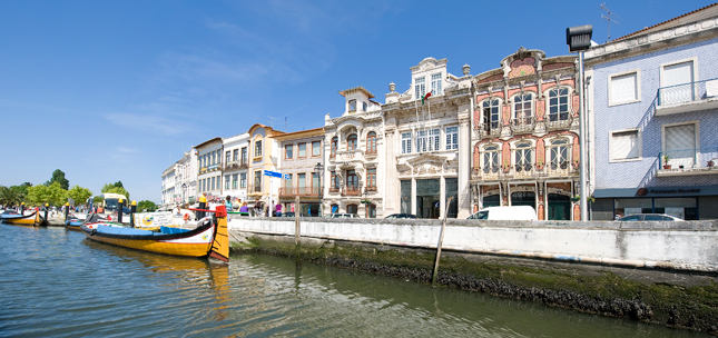 Asi nejrušnější ulička v Aveiru. Začátek projížďky po Canale central