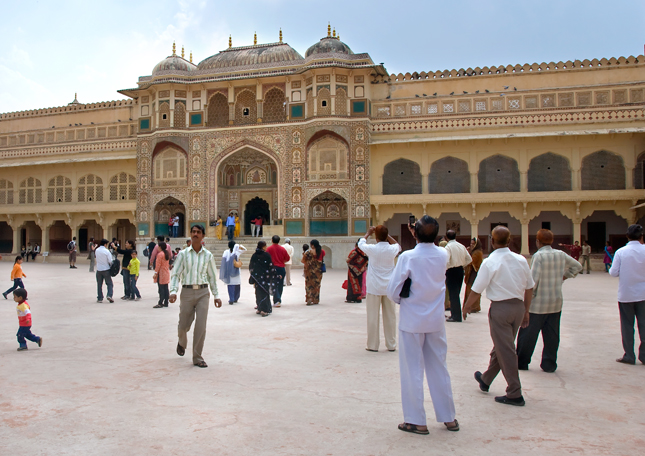Bohatě zdobená brána je propojena ze soukromými komnatami manželek mahárádži.