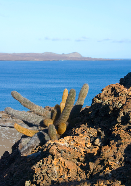 Endemický kaktus (Bachycereus nesoiticus) patří mezi první rostliny, kterým se podaří uchytit na lávových polích.