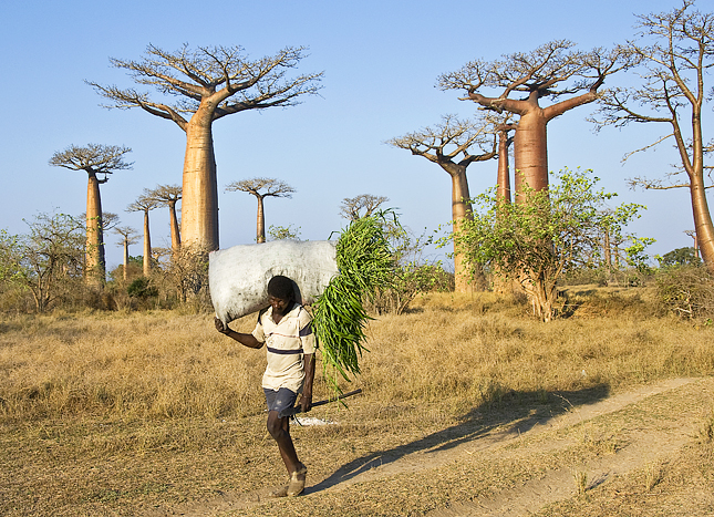 Asi se dost těžko lze vysvětlit pointu této fotky. Kdo ale měl možnost zastavit se u aleje baobabů, určitě pochopí. Široko daleko kolem baobabů totiž neroste tak zelená tráva, alespoň v říjnu, když jsme byli na Madagaskaru. Takže kde ten človíček nasbíral tolik brčálově zelené trávy je nám oběma záhadou.