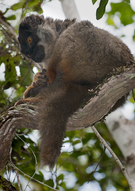 Tento střední druh lemura je všežravec, živí se ovocem, hmyzem ale i listy. Žije v severních oblastech Madagaskaru.
