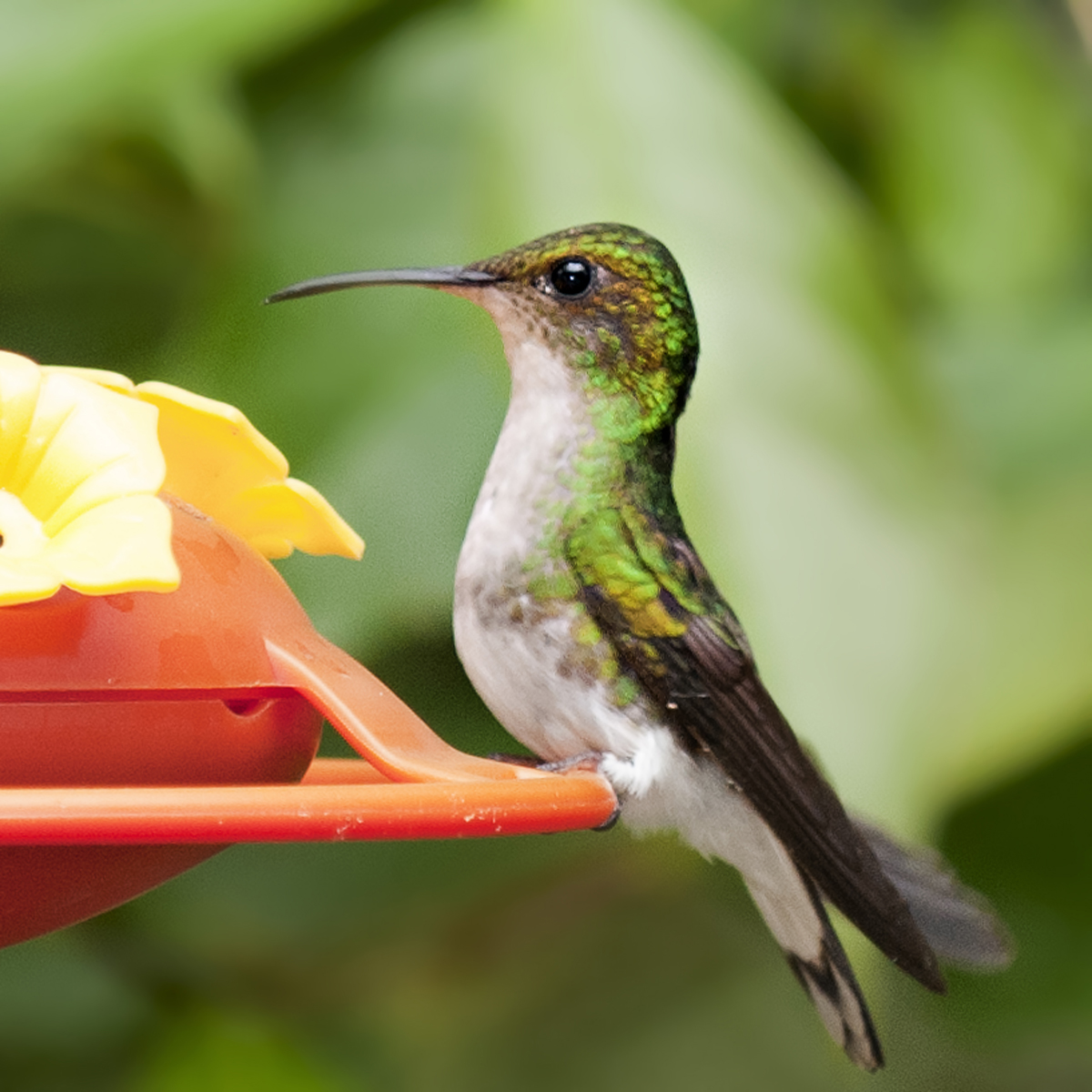 Samička kolibříka měděnohlavého blízko vchodu do NP Monteverde. Starší vědecký název je Elvira cupreiceps.
