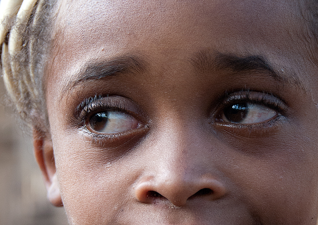 Krásné smutné oči děvčátka ve vesnici kmene Dorze. Alena má na focení lidí čuch.