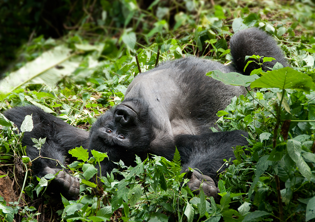 Toto je další stříbrohřbetý samec Ndahura z gorilí rodiny Bitukura. Je to vedoucí samec rodiny/tlupy. Objevili jsme jej společně se samicí a odrostlejším mládětem na mytince, kde se vyhřívali a sušili po ranním dešti. Na rozdíl od Rukumy moc aktivní nebyl. Jeho mottem zřejmě bylo: "A budeme se válet".