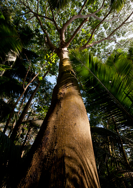Po dvou kilometrech pohodové chůze po písečné pláži nás směrovka zahání do pralesa, v jehož přítmí se škrabeme po úzké pěšince vzhůru. Jen občas se zde objeví osvětlený detail, který je možné zvěčnit.