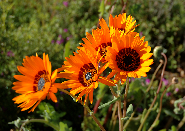 Květy Ursinia calenduliflora patří mezi nejvýraznější a nejčetnější v oblast Namaqualand. Společně s oranžovými květy Gazanii a Gorterií obarví krajinu.