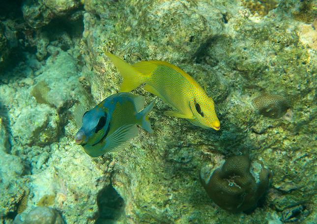 Další krásně zbarvenou korálovou rybku jsme viděli téměř vždy v páru. Zatím se mi nepodařilo identifikovat, zda se jedná o dva jedince různého pohlaví nebo o mladého a dospělého jedince.