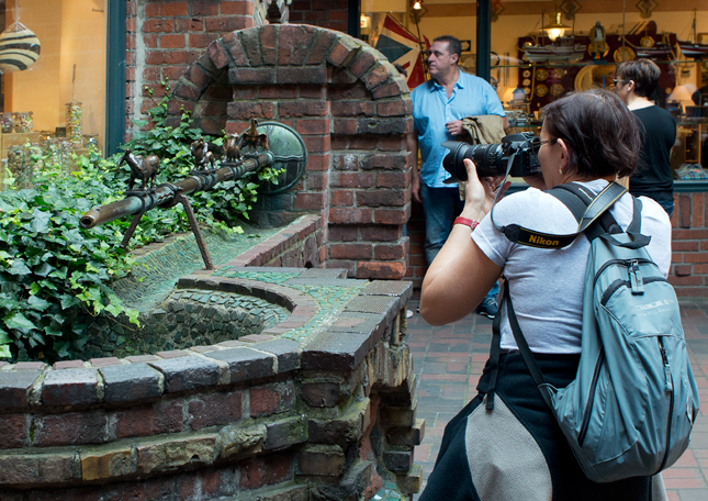 Kdyby tak bratři Grimové tušili, jaký turistický business v Brémách odstartují. I v jednom zákoutí Böttcherstraße si muzikanti našli své místo a zdobí zde malou vodní parádičku. Samozřejmě šílení fotografové se vše snaží zvěčnit.