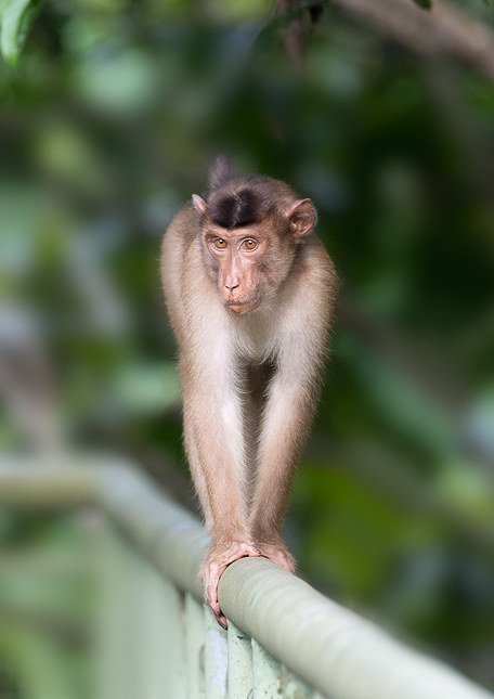 Rainforest Discovery Centre je vlastně kus pralesa nedaleko centra Sepiloku s poměrně dlouhou vysutou lávkou pro pozorování života v korunách stromů a soustavou informačních tabulí o fauně, která tu žije, ale kterou s velkou pravděpodobností neuvidíte. My jsme sem vyrazili nezvykle brzy (oficiálně vlastně ještě bylo zavřeno). Upřímně řečeno moc jsme nečekali, ale možná právě proto jsme odcházeli spokojeni. Fotka makaka vepřího chytla moc pěkné světlo a proto jsem ji zařadil do úvodu této fotogalerie. Jinak makaků bylo všude dost a tak jsme neprávem řadili mezi druhy méně zajímavé. V Sabahu žijí dva druhy velice podobných makaků: makak vepří ( na obrázku) a makak dlouhoocasý. Musím přiznat, že jsem je ze začátku nerozlišoval. Pokud je ale vidíte i s ocasem, je jejich rozlišení snadné, makak vepří má krátký ocas a makak dlouhoocasý ho má nepřehlédnutelně delší.
