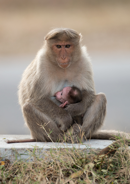 Poddruh: M.r.radiata. Makak kápový je blízký příbuný severoindickému druhu makak rhesus. Tento poddruh obývá západní část jižní Indie, zatímco druhý poddruh M.r.diluta východní část nejjižnější části Indie. Tuto makačí maminu jsme viděli na tarásku u parkoviště při vstupu do národního parku.
