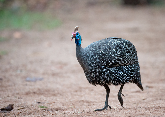 Tyto perličky (společně s nyalami a prasaty savanovými) se procházeli kempem jak domací slepice.