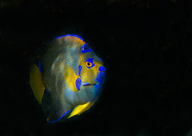 Pomec řasnatý patříl k těm nejbarevnějším rybám v atolu. Byl zde poměrně hojný, ale na focení byl hodně hyperaktivní.