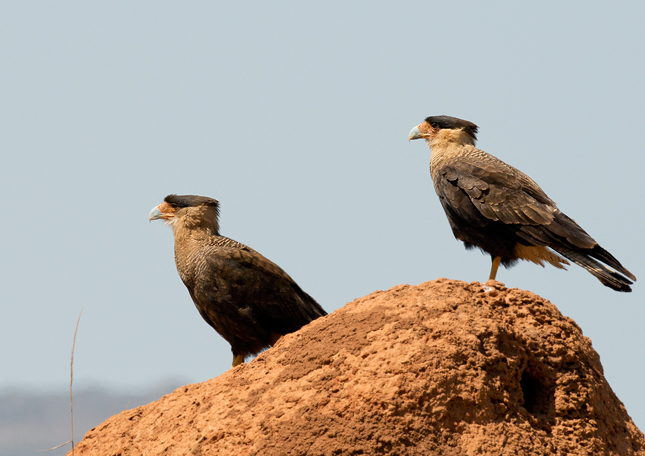 Tyto krásné dravce jsme potkávali prakticky ve všech lokalitách Jižní Ameriky. Tady v Serra da Canastra jsme je často viděli na termitištích, které jim (podobně jako i jiným ptákům), sloužily jako pozorovatelny.