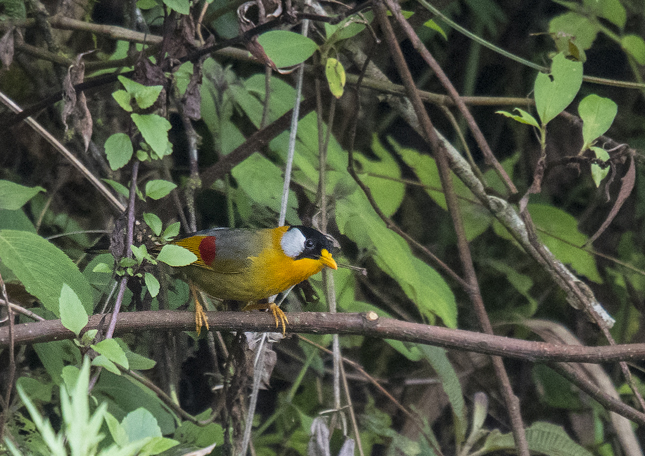 Tuto velice pestře zbarvenou timálii jsme viděli jen jedinkrát u indických hranice ve východním Bhútánu. Bohužel vzhledem k špatnému počasí je fotografie v horší kvalitě.