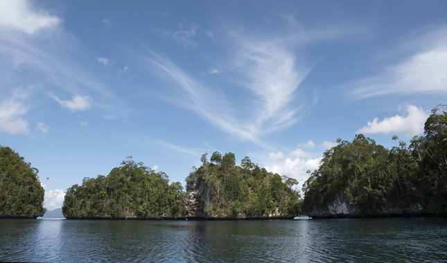 Po obědě jsme pluli podél hlavního ostrova Weigeo a užívali si pohledů na malé ostrůvky rozeseté kolem jeho pobřeží.
