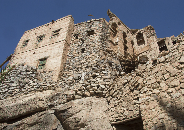 Domy v Misfatu jsou vybudovány na sklanatém podloží. Některé jsou postaveny z místního kamene, jiné z nepálených cihel. Některé prameny uvádějí, že některé domy v původním Misfatu jsou staré 400 let, jiné prameny jsou střízlivější a uvádějí stáří 100 až 200 let. Z některých domů jsou dnes už evidentně ruiny, jiné jsou zamčeny a neobývány. Myslím, že jen maximálně ve třetině domů žijí stálí obyvatelé.