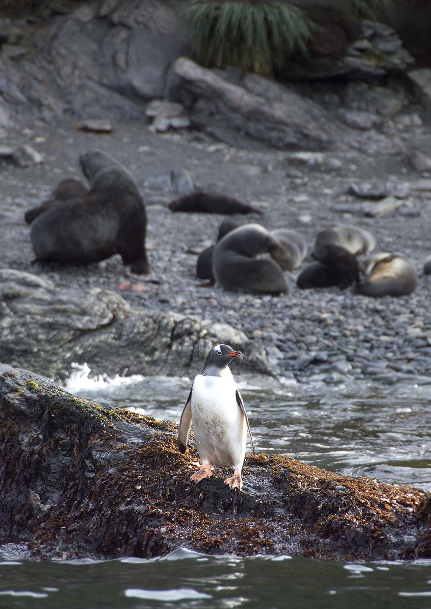 Poddruh: P.p.papua. Na pobřeží jsme zahlédli i čtvrtý druh tučňáka, tučňáka oslího.