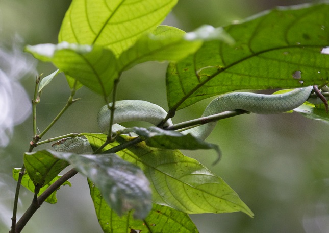 Tohoto chřestýšovce z čeledi zmijovitých hadů objevil náš průvodce ve větvích snad dva tři metry od pěšinky v záchranném orangutaní stanici v Sepiloku. Byl to náš první (jednoznačně jedovatý) had na Borneu a tak jsme k focení přistupovali s náležitým respektem. Nicméně po několika snímcích nám otrnulo a zkoušeli jsme fotit jak nejblíž to šlo. Začalo nám vadit, že se nehýbe a že je v ne příliš fotogenické poloze. Hadovi ale byla naše přání evidentně lhostejná během celého procesu focení se ani nehnul. Možná zaplať pánbůh.