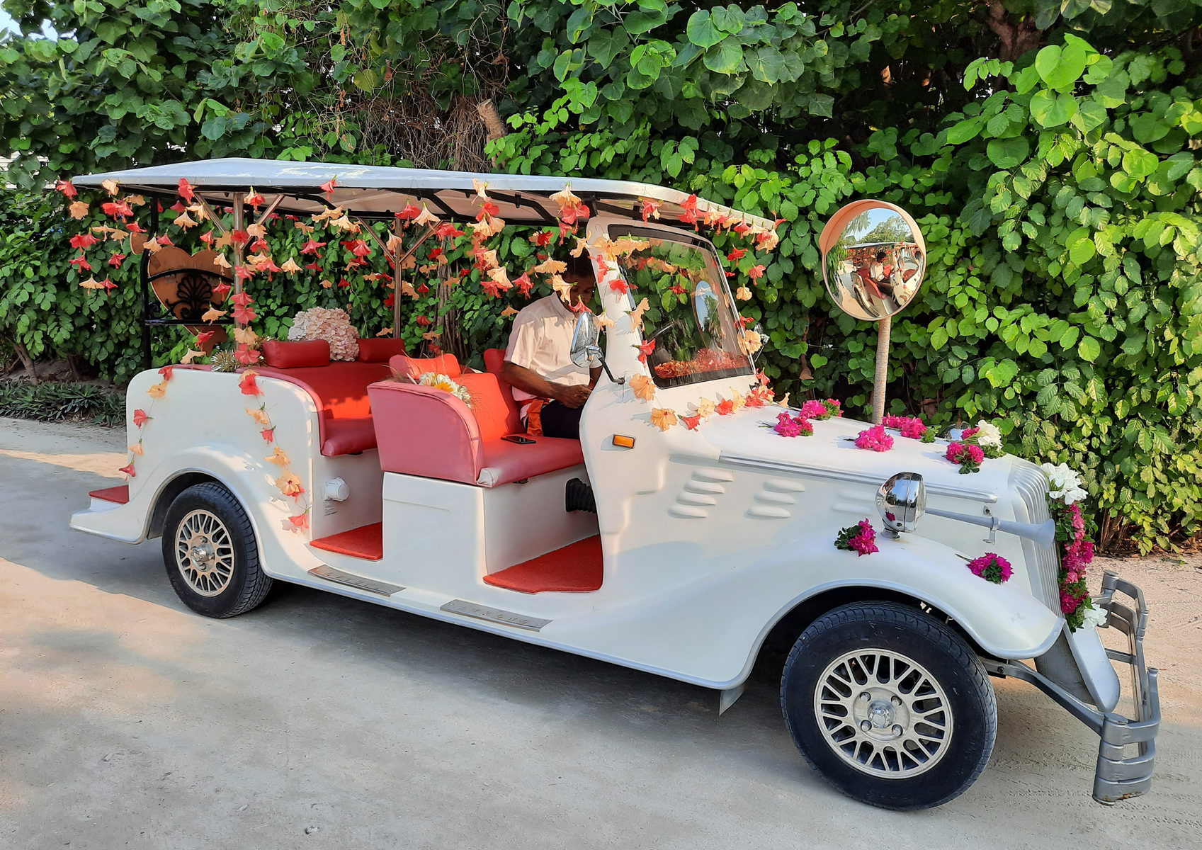 Při jedné z našich procházek jsme narazili na ozdobenou svatební buginu. Zdenda by se v ní rád svezl, ale museli jsme mu vysvětlit, že si musí ještě pár let počkat. (Mj. svatební obřady se odehrávali u centrální pláže a během našeho pobytu jsme registrovali tři.)