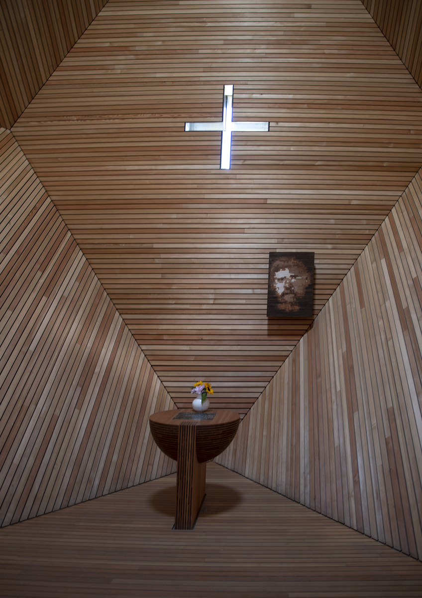 Interiér kapličky byl stejně nekonvenční jako exteriér.