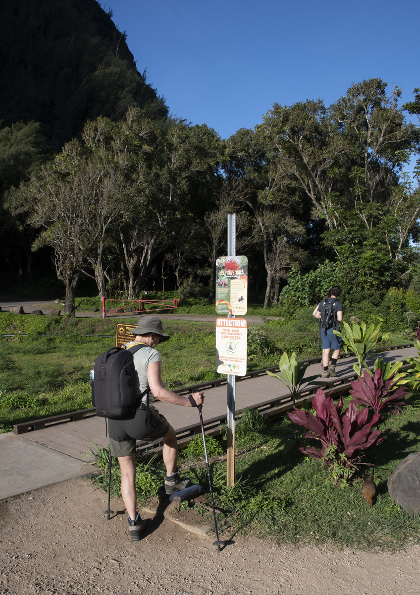 Před začátkem treku " Hanakapi´ai Falls Trail" je čistítko na boty, které by mělo zabránit nebo alespoň omezit zavlečení cizorodých rostliných druhů do chráněné oblasti Na Pali Coast.