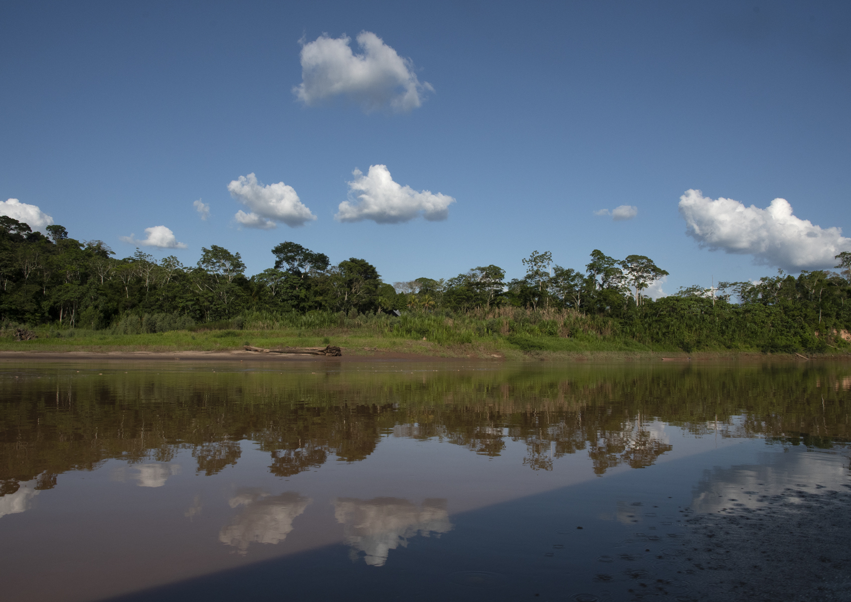 První část plavby nám příliš nepřipomínala plavbu neprostupnou džunglí, na březích byl většinou jen řídký porost, v některých místech probíhalo dokonce mýcení lesa. Když jsme se dotázali na tuto "nejasnost", naše průvodkyně Lucy nám vysvětlila, že v této oblasti vlastně existuje několik úrovní ochrany přírody. Podél silnice spojující Cusco s Puerto Maldonado je zona bez zvláštní ochrany, potom jsou nárazníkové zóny, národní rezervace a národní parky, oblasti s nejvyšším stupněm ochrany přírody. My jsme právě proplouvali náraznikovou zónou.