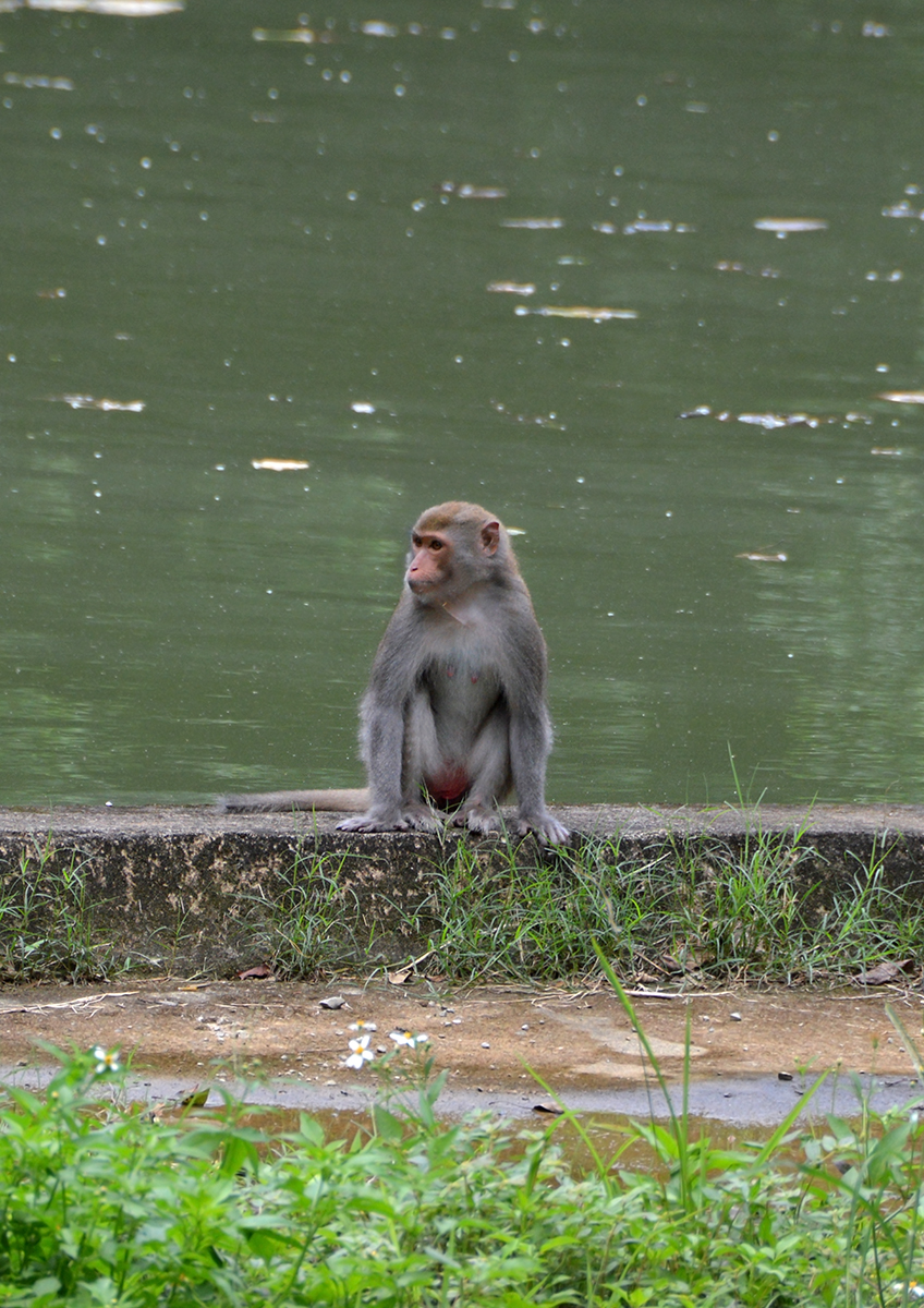 Makak rhesus je jedním ze tří druhů makaků, kteří žijí v národním parku Cuc Phuong. Alena na něj narazila u umělé vodní nádrže při jednom ze svých odběhnutí z ptačí pozorovatelny.