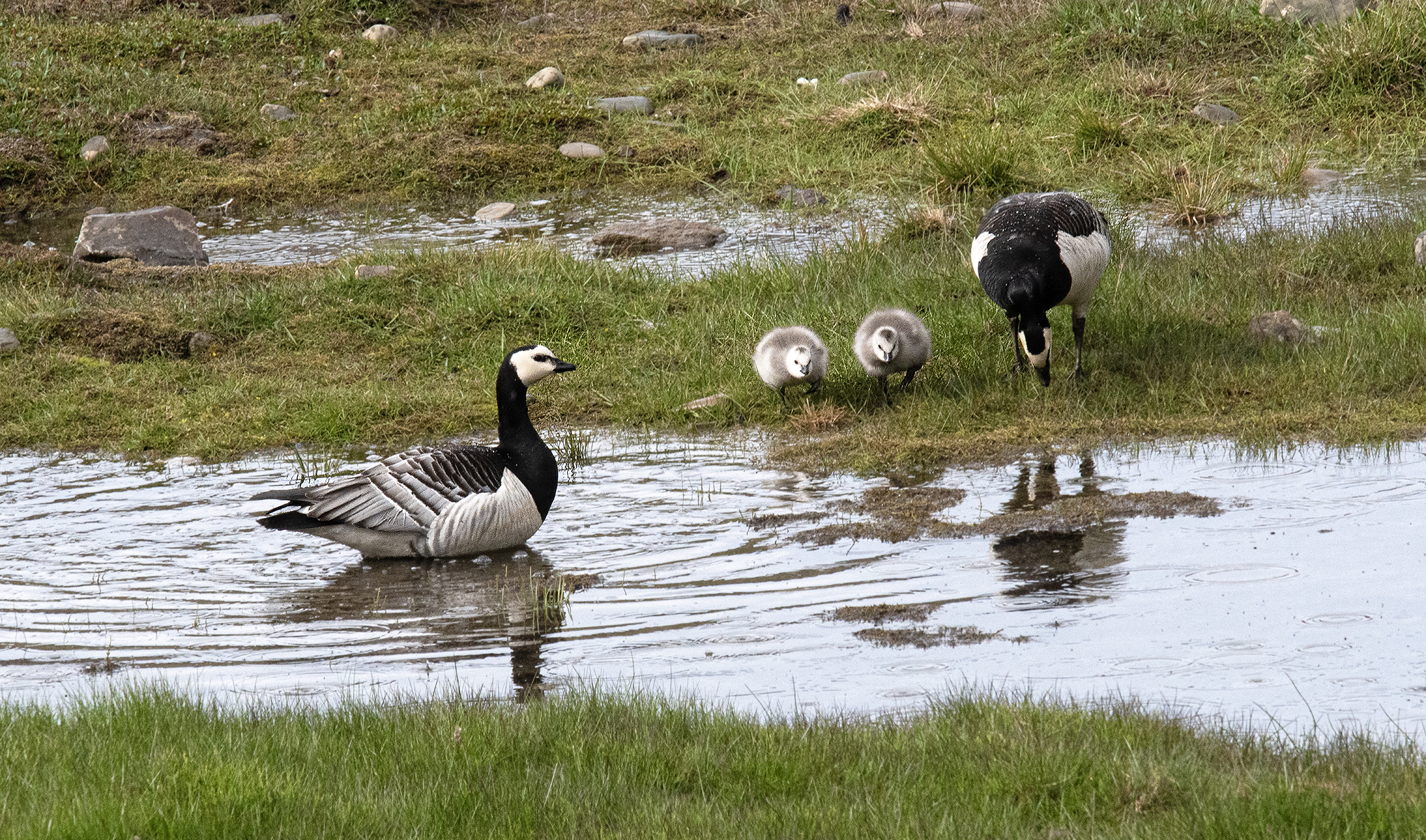 Tento druh divokých husí potkáte v Longyearbyenu na každém kroku. Největší hejna jme viděli před domu na zelených loukách podél sinice k Adventdalen, ale běžně se pohybovaly i na silnicích a mezi domy v centru městečka.