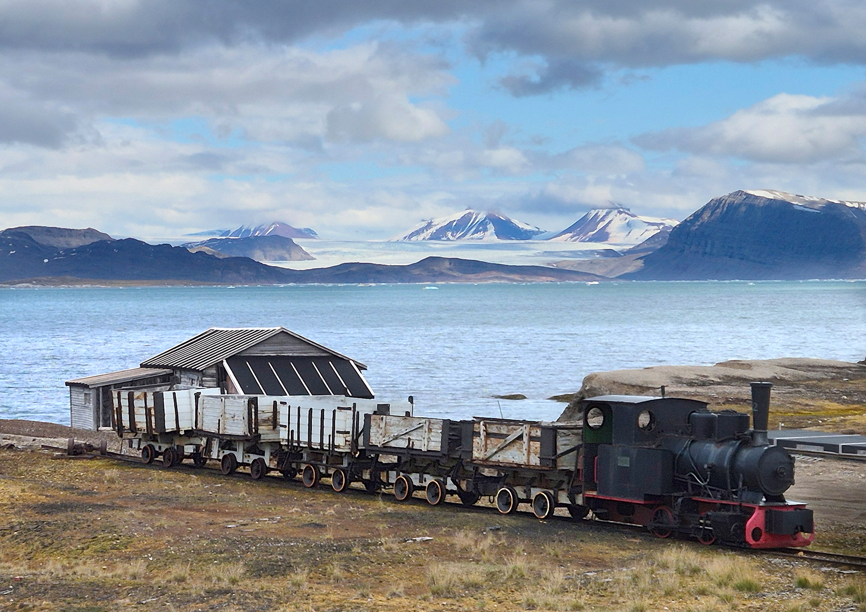 V městečku Ny‐Ålesund, které dnes obývají vědecké týmy z celého světa, se dochovalo pár desítek metrů úzkorozchodné železniční trati, která spojovala uhelný důl a přístav. Na něm dnes stojí vyleštěná, ale nefunkční parní lokomotiva a několik nákladních vagonů, které v první polovině 20.století sloužily k přepravě uhlí. Podrobnosti o lokomotivě i místní železniční přepraví lze najít na: https://www.steamrailway.co.uk/blog/features/the-train-at-the-top-of-the-world/