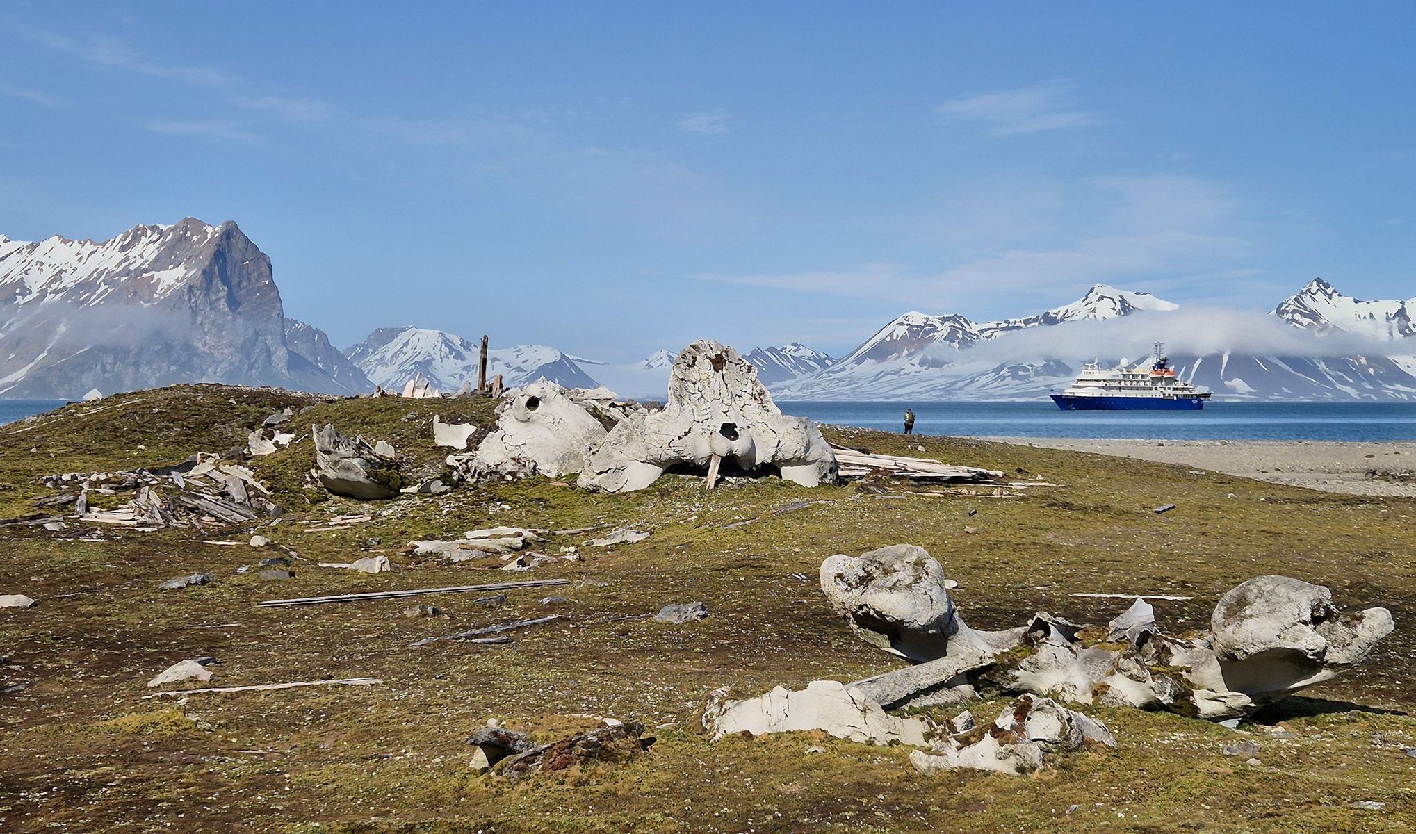 Velrybí kosti jsou rozesety téměř po celém pobřeží zátoky Burgerbukta, jako připomínka činnosti velrybářů.