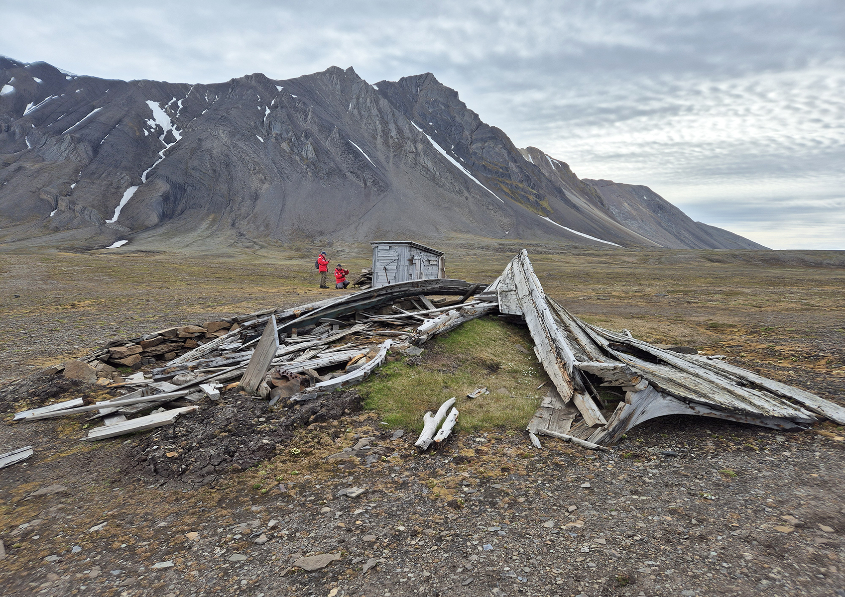 Další pozůstatky velrybářské stanice v zátoce Ingebrigtsenbukta jsou pozůstatky skladu Kjeftausa jehož střechu tvořil převrácený.
