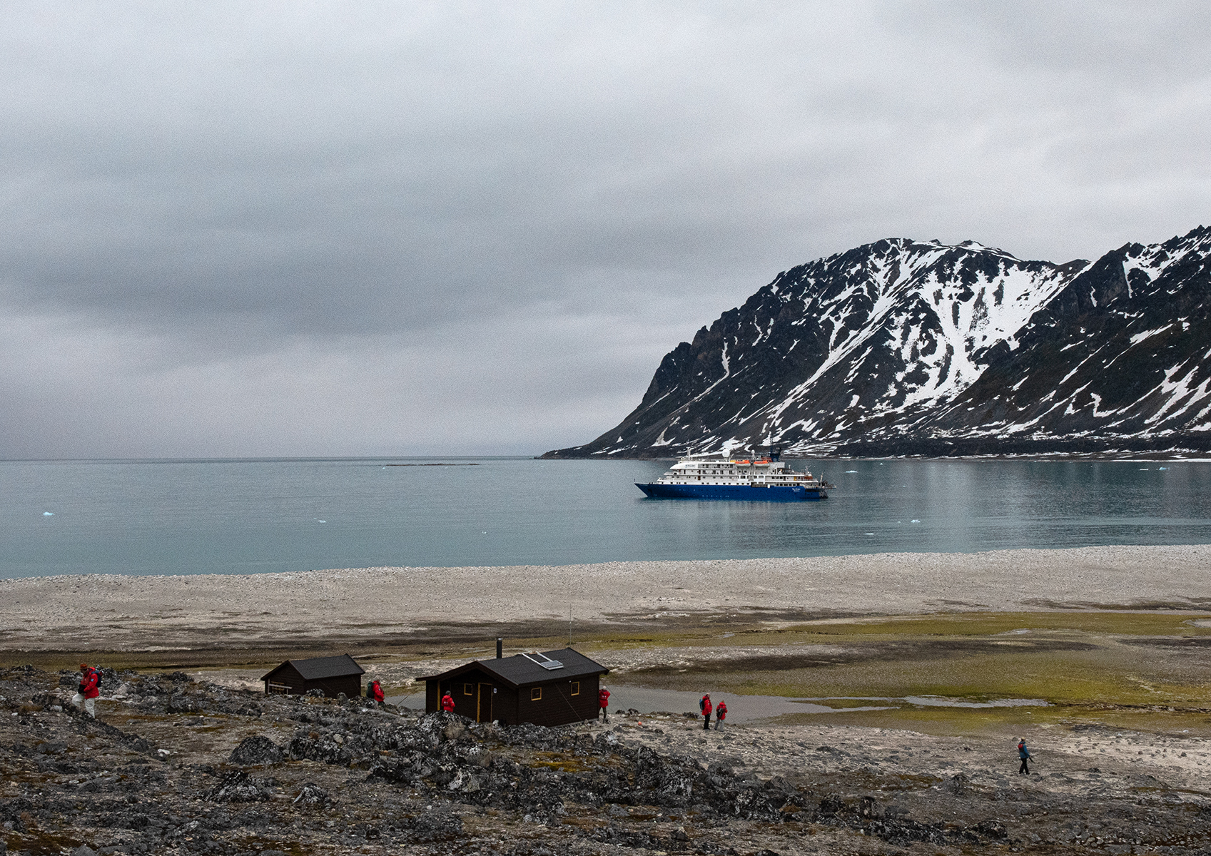 Chatky strážců NP na pláži v Gravnessodden