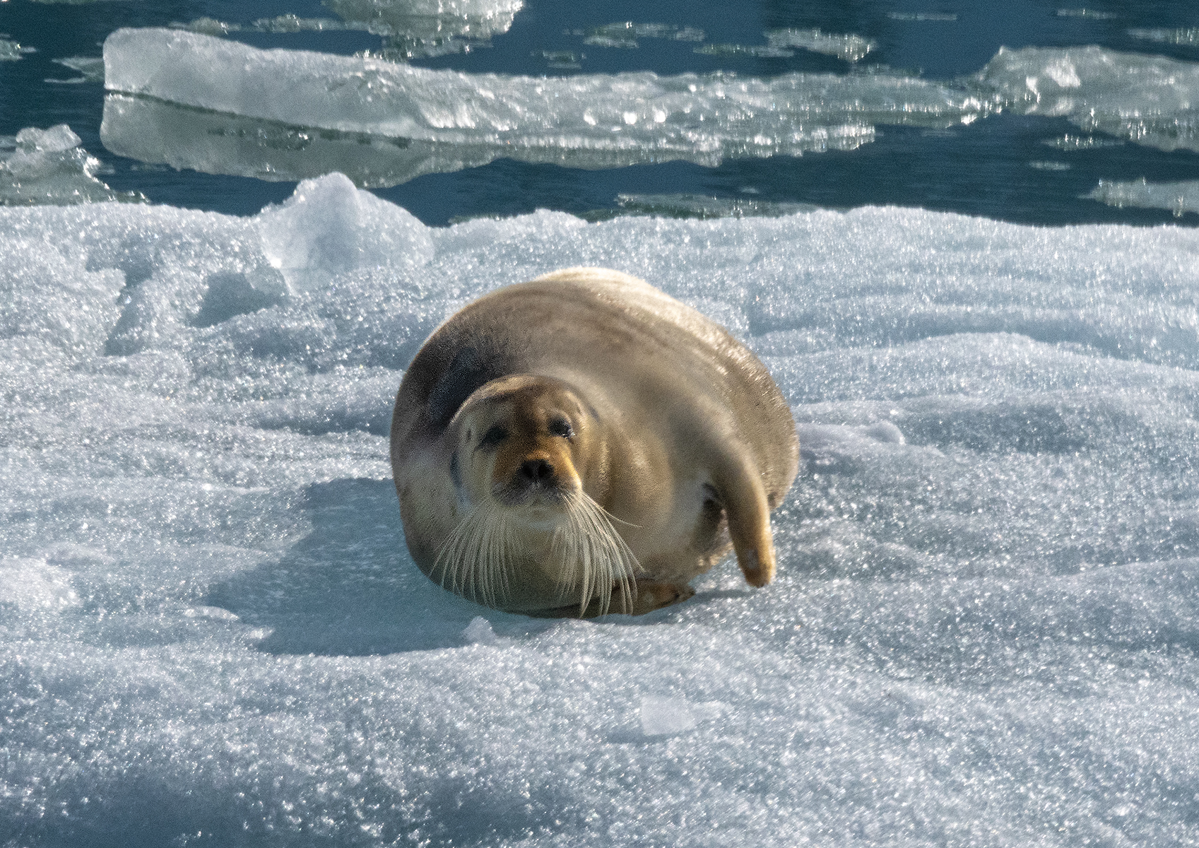 Domovem tohoto velkého tuleně jsou kra ledové plochy v severních polárních krajích.  Dospělá zvířata dosahují délky 2 až 2,5 m a váhy 250 až 300 kg, samice bývají mírně mohutnější. Má obzvláště vyvinuté hmatové husté… více