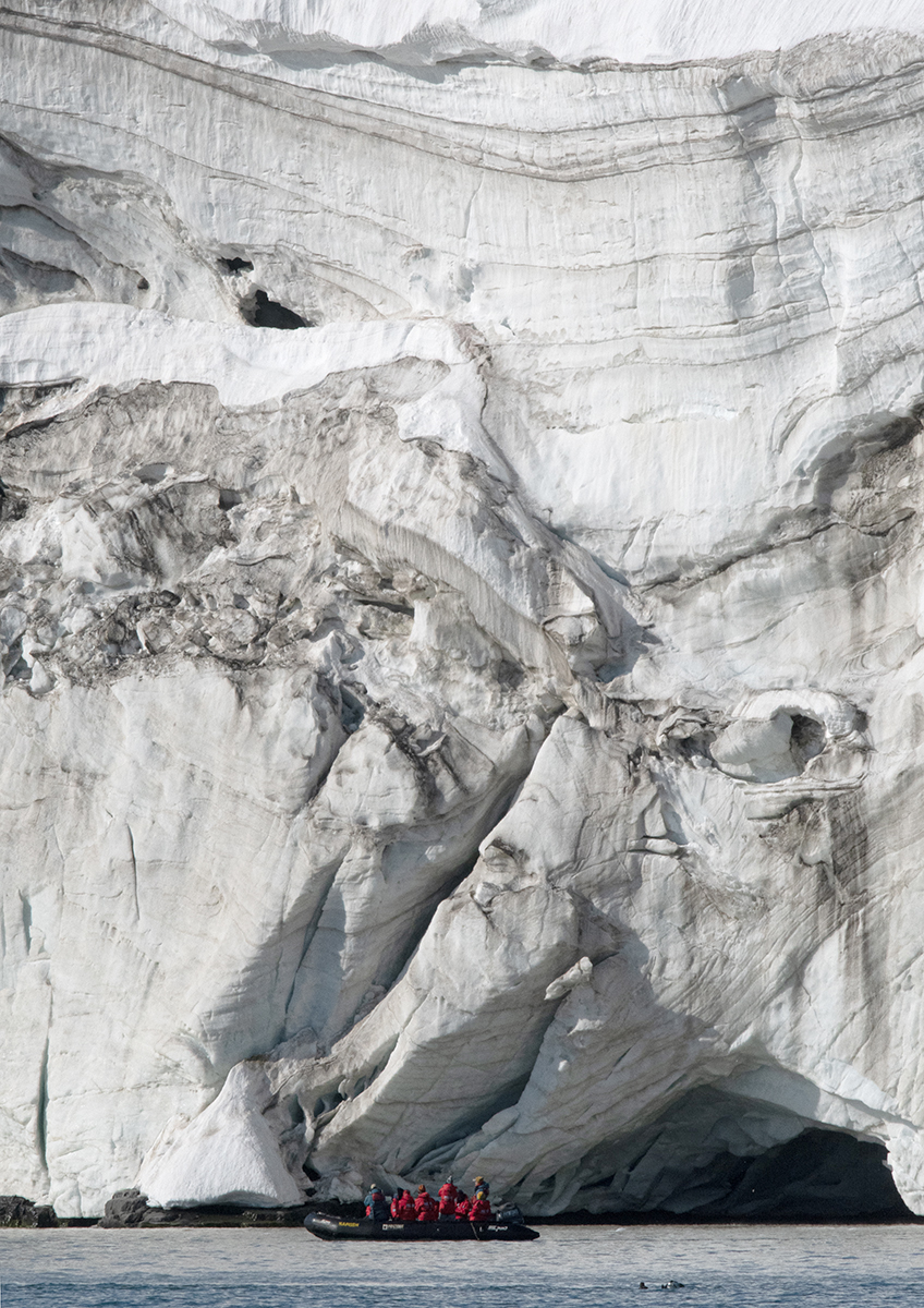 V těsném sousedství čedičových útesů Alkefjelletu je mohutný ledovec.