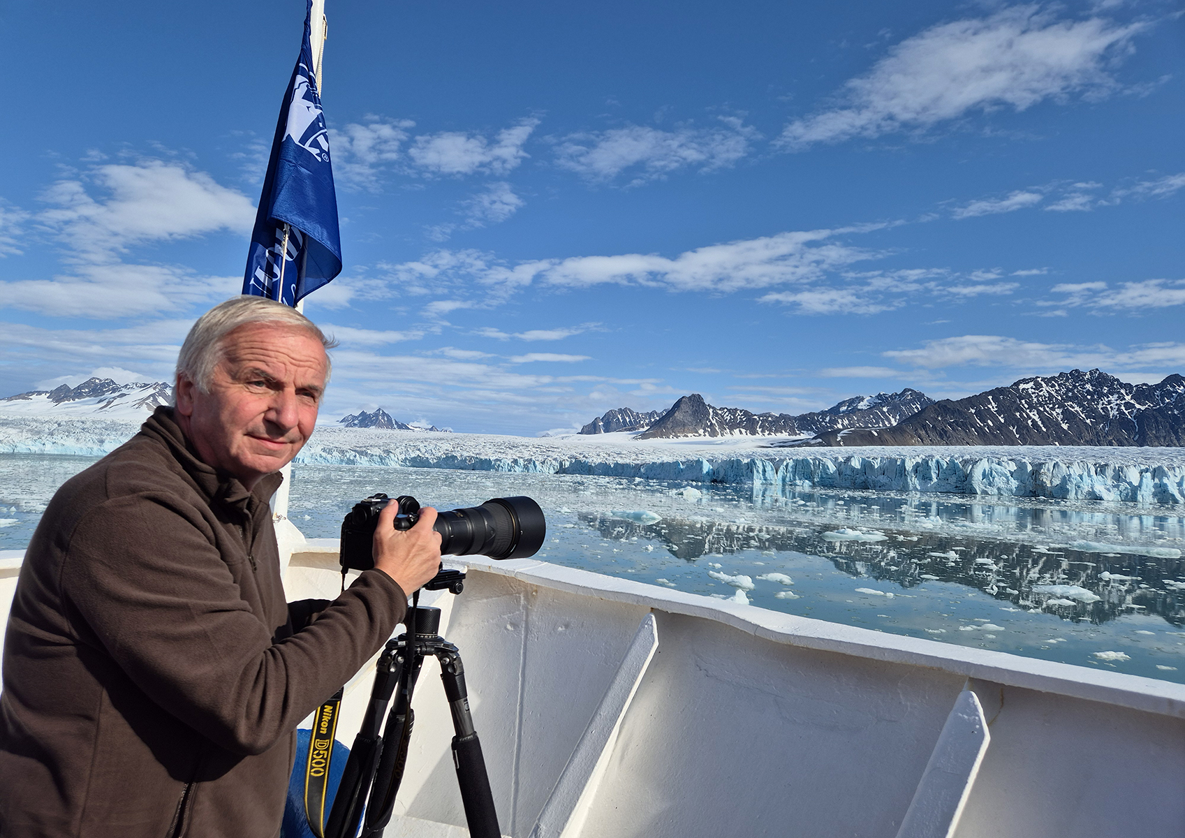 Pokud nám počasí, lední medvědi nebo jiné okolnosti nedovolily vyrazit na zodiacích fotíme z paluby. Většinou na přídi 4. paluby.