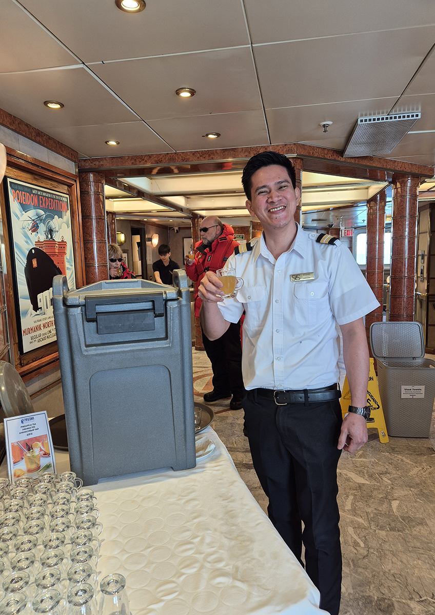 Po každém návratu z plavby zodiakem nás hned v teplém zádveří čekal usměvavý steward s šálečkem teplého a sladkého čaje.