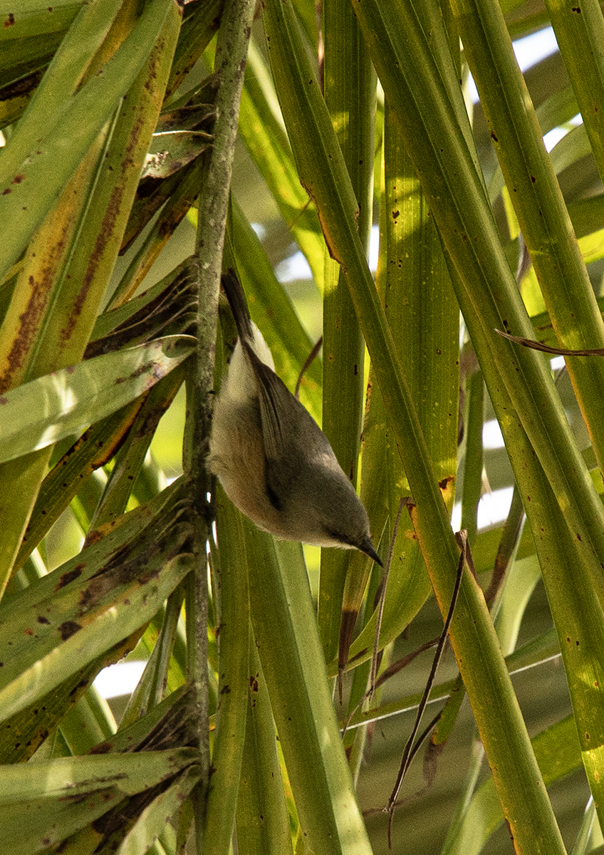 Dost zašumělá fotka focená z dálky a v šeru palmových listí.