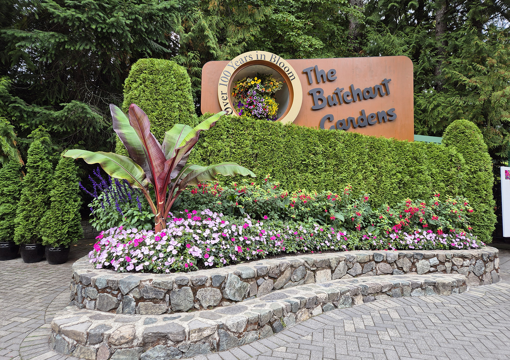 Na místě, kde jsou dnes Butchartovy zahrady, byl na počátku minulého století vápencový lom a cementárna. Když se zásoby vápence v roce 1912 vyčerpaly, začala paní Butchartová postupně zavážet původní lom ornicí a realizovat tak svůj sen o vybudování krásné zahrady. Nejprve vznikla tzv. Zapuštěná zahrada a do roku 1929 Butchartovi ji rozšířili o Japonskou zahradu na pobřeží, Italskou zahradu na svém bývalém tenisovém kurtu a voňavou, Růžovou zahradu. Potomci Butchartů pak postupně obohacovali zahradu o venkovní koncerty, noční osvětlení a v zimě kouzlo Vánoc. Později od roku 1977 se zde každoročně začala pořádat choreografická ohňostrojná show a v roce 2009 současná majitelka Zahrad, Robin, přidala Dětský pavilon a Zvěřinec. Dnes jsou Zahrady Butchart národní historickou památkou Kanady. Při procházce Zahradami na vás čekají zbytky původní cementárny a miliony záhonových rostlin ve více než 900 odrůdách.