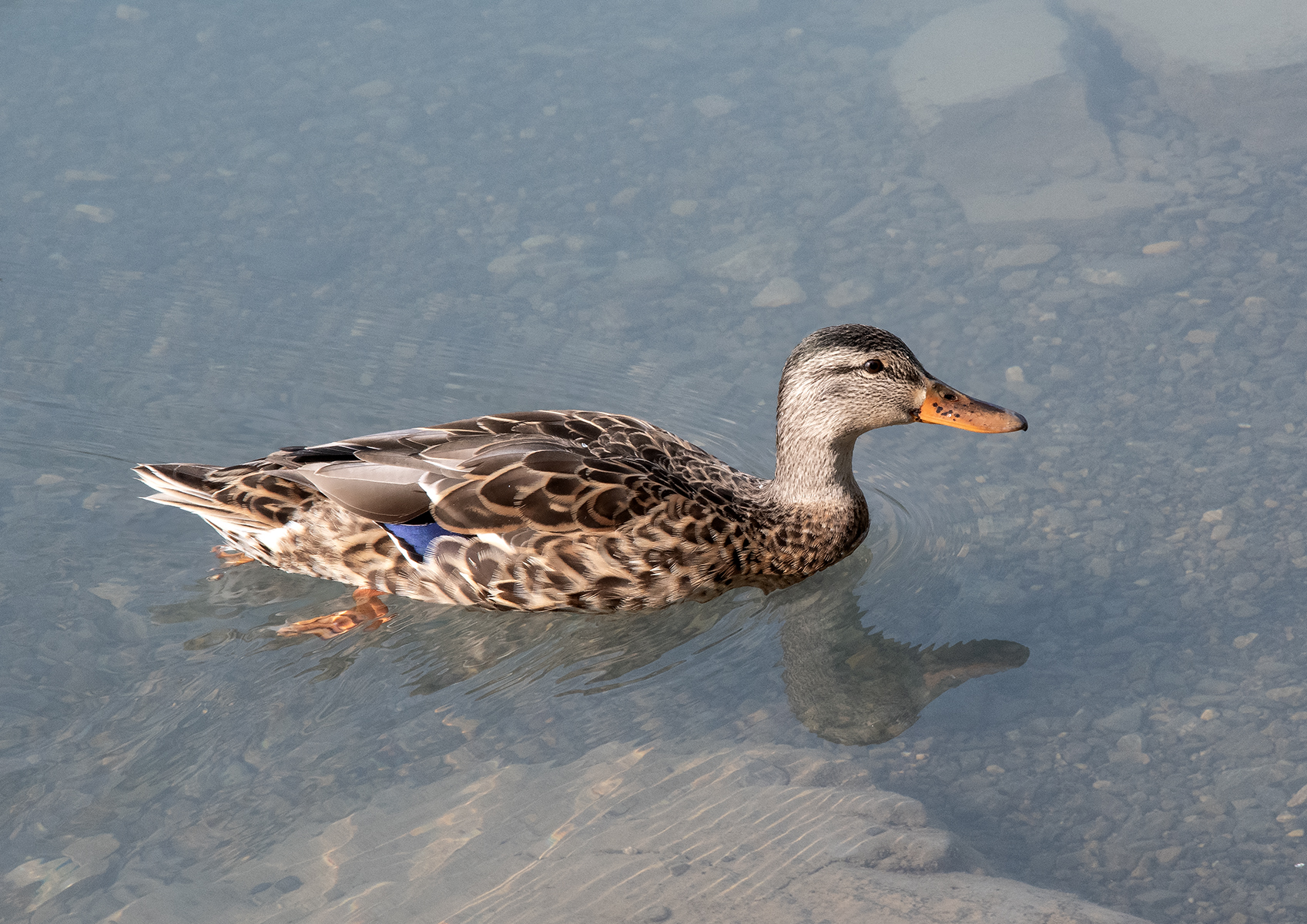Vyhlídku u jezera Lower Waterfowl Lake jsme zvolili i v naději, že kromě krajiny zde vyfotíme vodní ptáky. Tato kachna však byla jediným opeřencem, kterého jsme u jezera viděli.