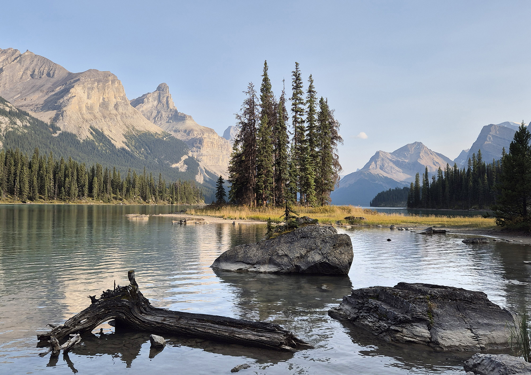 Na vyhlídkové plavbě jsme se vylodili u ostrůvku Spirit Island, který je pro první obyvatele (národ Stoney Nakoda) duchovním místem.