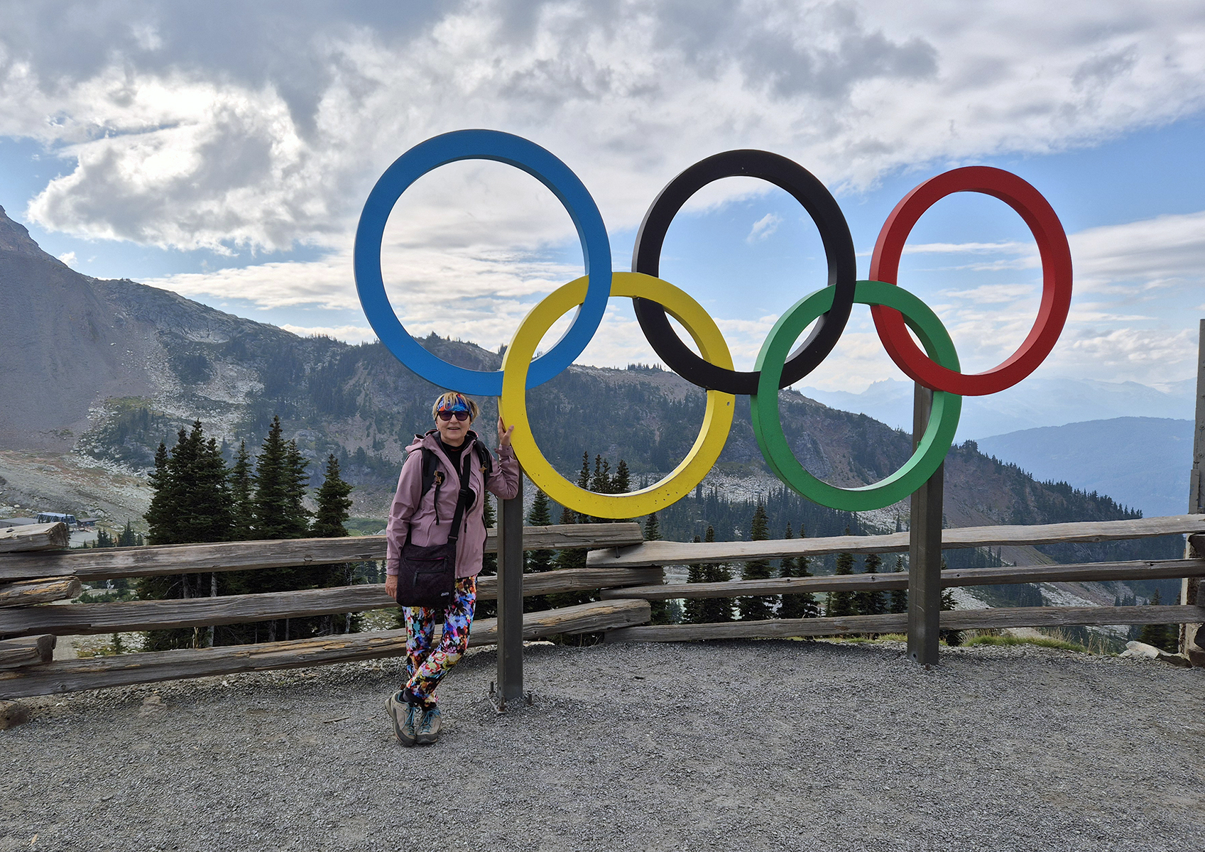 Symbol olympijských her je hned u vchodu do vrcholové stanice Peak 2 Peak.