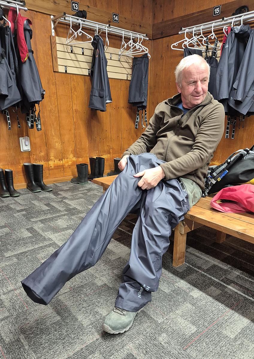 Za restaurací je zvláštní místnost - šatna, kde máme odložené zapůjčené gumáky a nepromokavé slušivé oblečky. Podle počasí a také podle druhu aktivity si oblékáme obleček nebo gumáky, ale většinou obojí. Dnes nám počasí předepisuje obojí. V 7:30… více