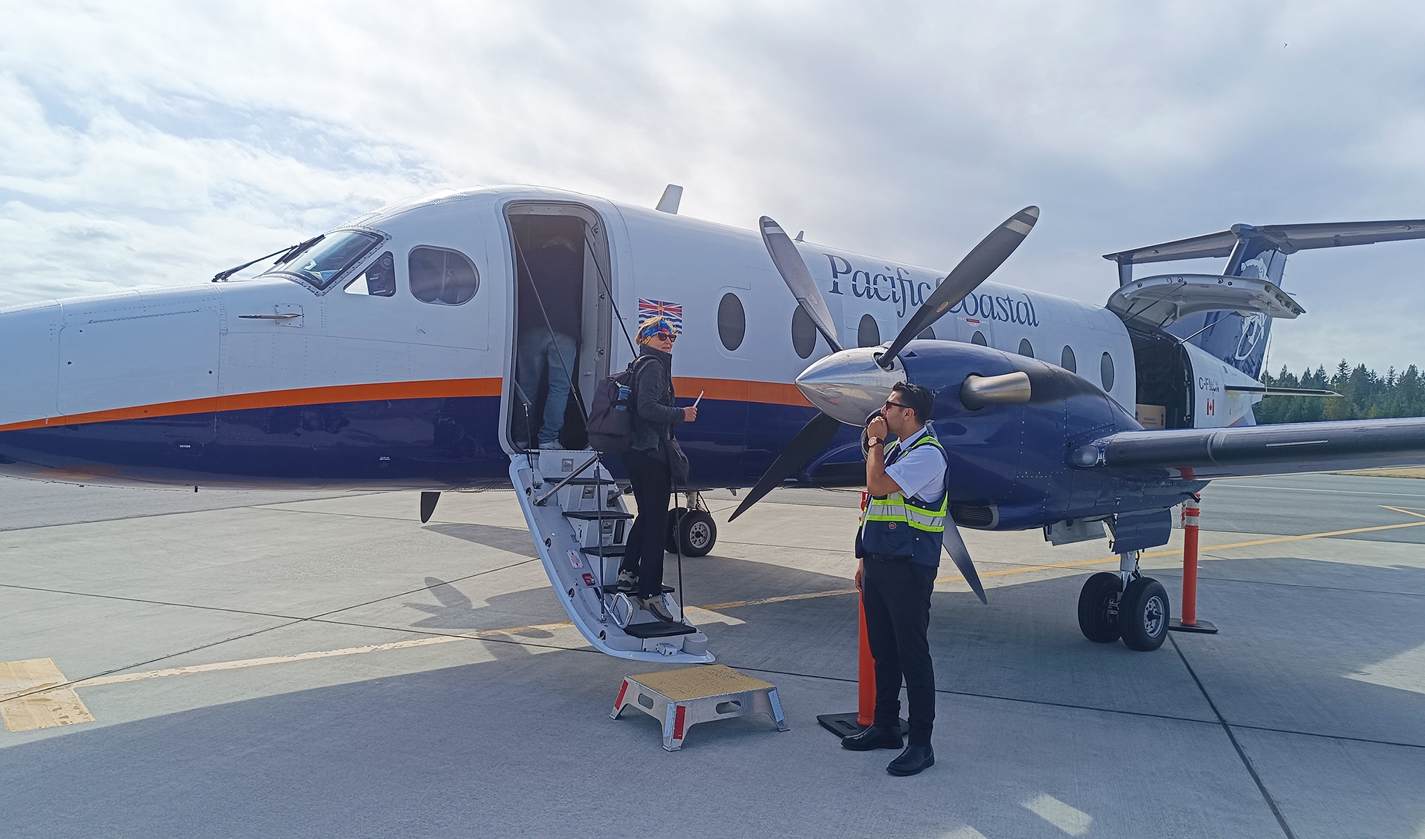 Alena nastupuje do letadla Beechcraft společnosti Pacific Coastal. Do Vancouveru odlétáme dle plánu přesně v 13:45 místního času.