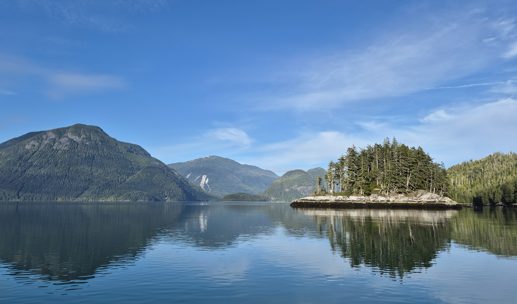 Asi hodinu před tím, než jsme vpluli do zálivu Glendale Cove, nás kapitán upozornil na malebný ostrůvek u pravého břehu zálivu Kight Inlet. Při posledních plavbách kolem něj viděli na jeho pobřeží opakovaně mladou, ale zřejmě poraněnou medvědici.