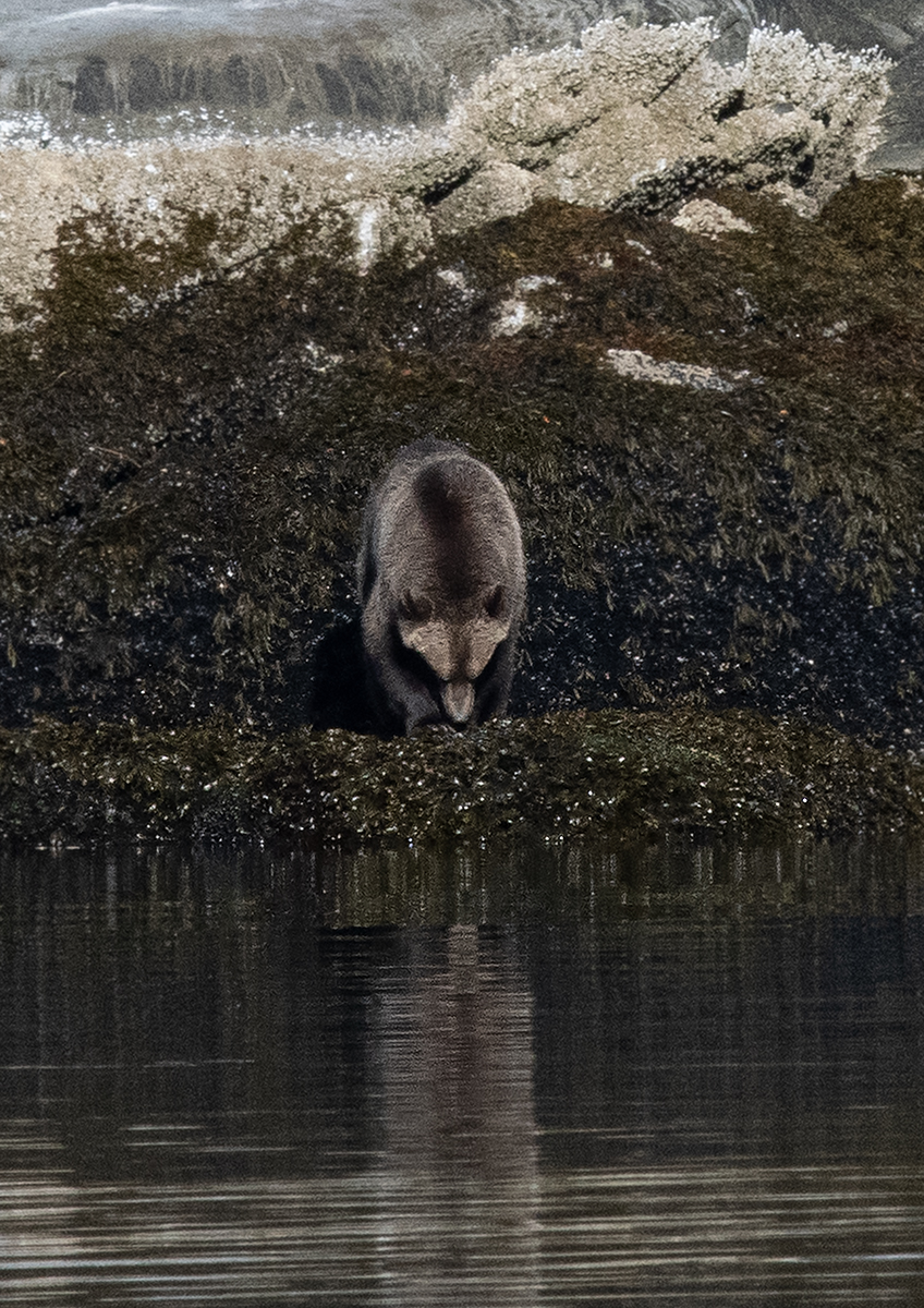Kapitán párkrát zamanévroval vlevo a vlevo a náš první grizzly na pobřeží Britské kolumbie byl tady.