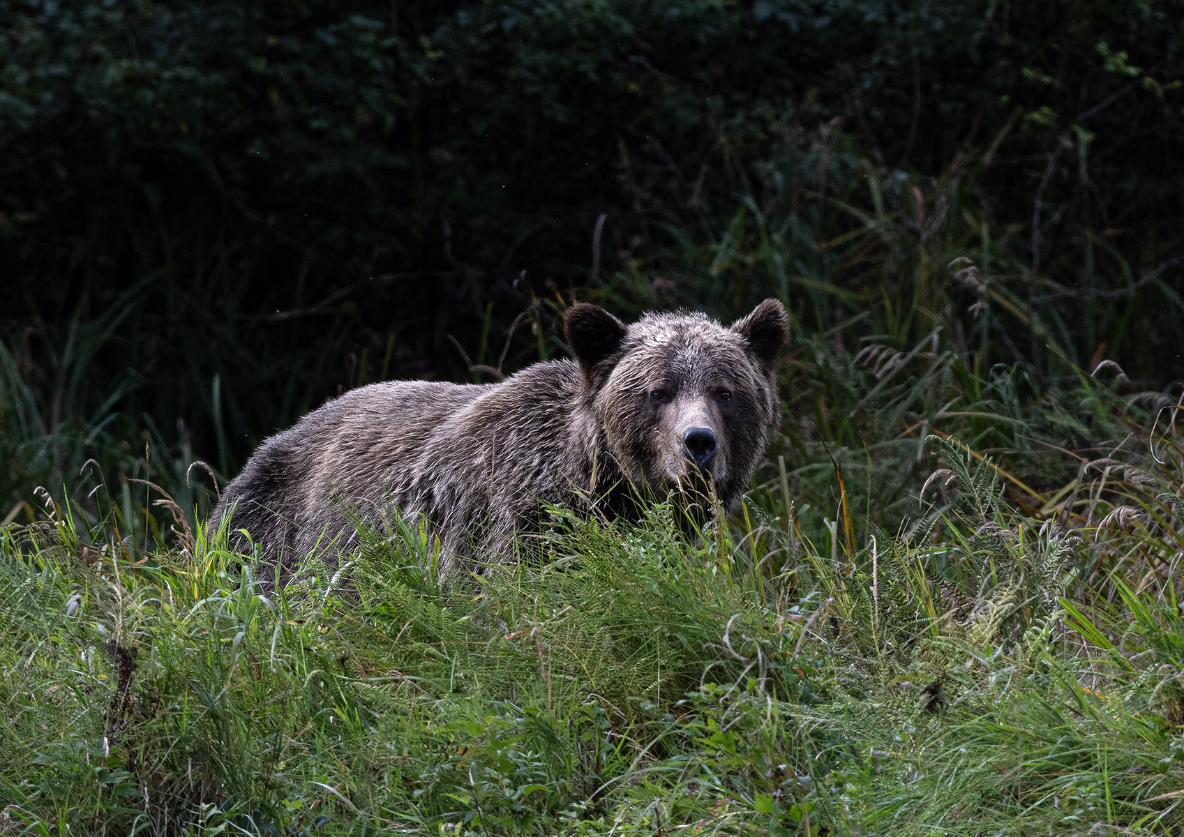 Medvěd se pomalu přesouvá směrem k ústí potoka a se snažíme ho sledovat.