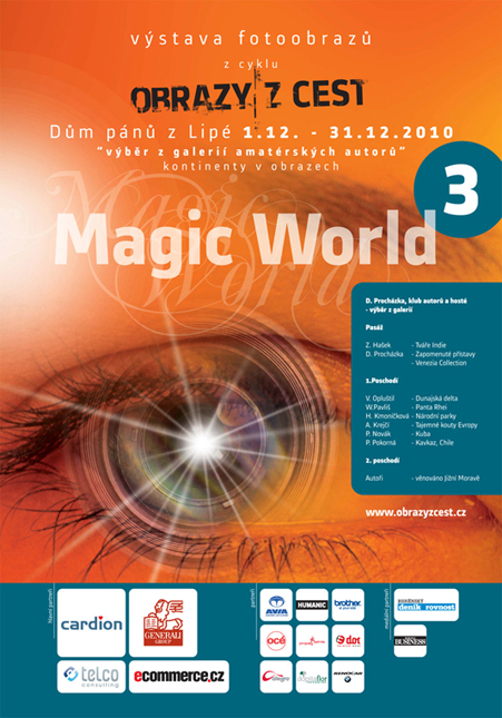 Třetí výstava "Magic World" skupiny amaterských fotografů sdružených v projektu : Obrazy z cest" v átriu Domu pánů z Lipé na brněnském náměstí svobody. Výstava navazuje na předchozí dvě stejnojmenné výstavy v roce 2009, na kterých jsme rovněž participovali.